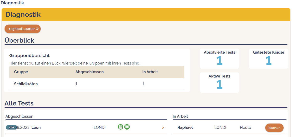 Klicke zum Ausprobieren auch mal auf Raphael. Er hat das LONDI-Screening noch nicht abgeschlossen: