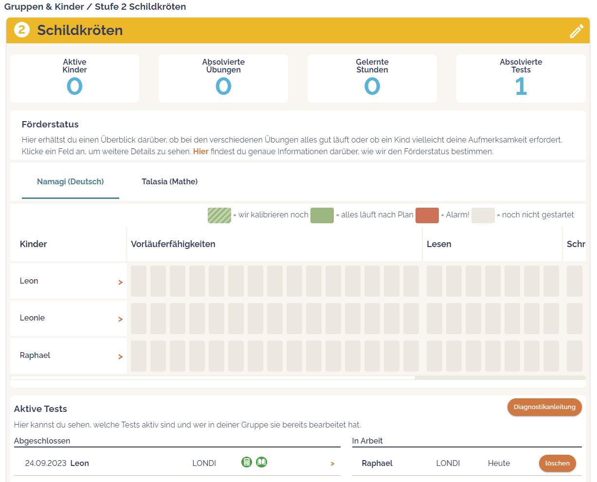 So landest du in der Gruppenübersicht der Schildkröten und kannst hier nun die Kinder im Gruppenvergleich betrachten: