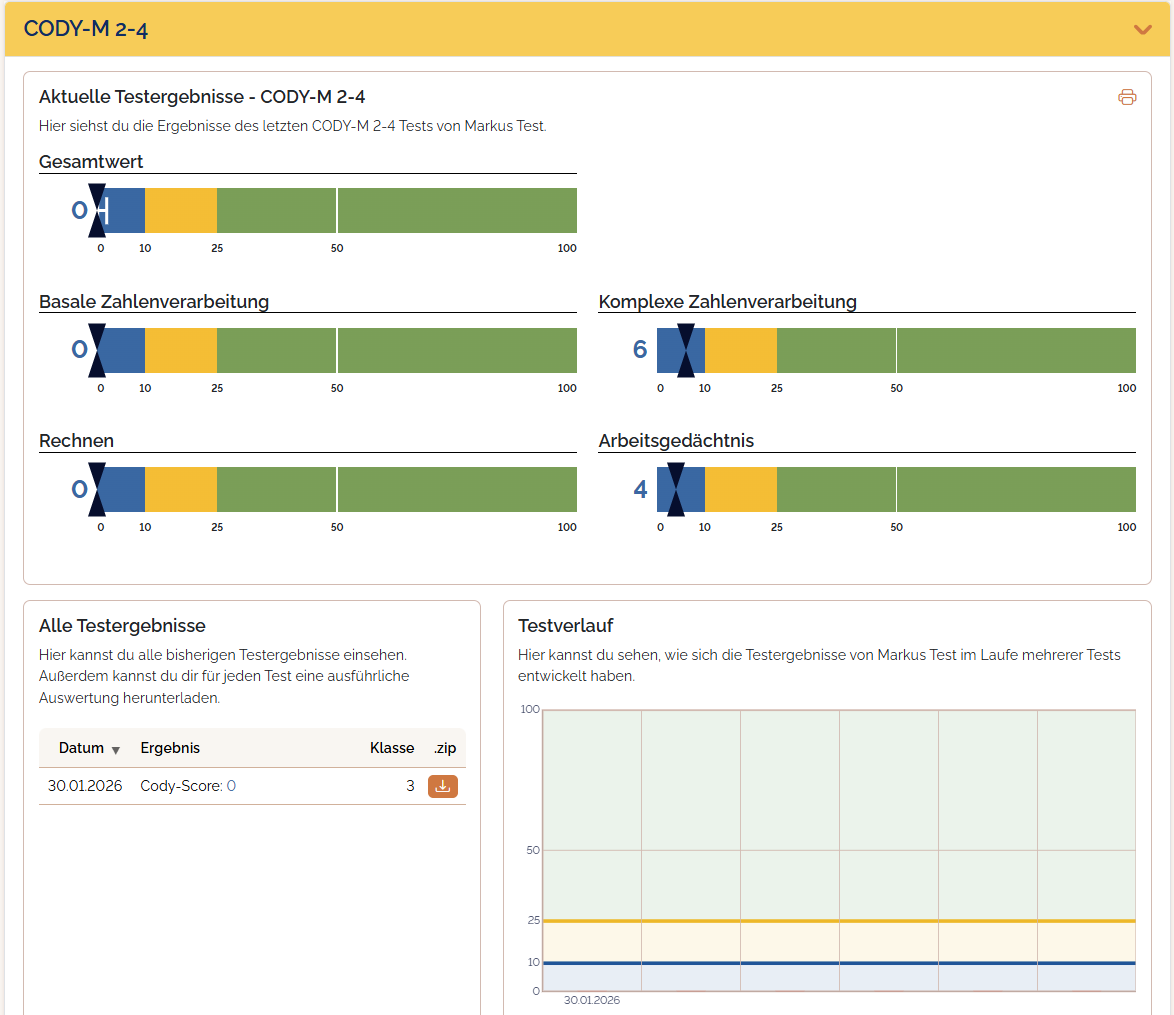 Dies ist eine Zusammenfassung der Ergebnisse der zuletzt durchgeführten Testverfahren.