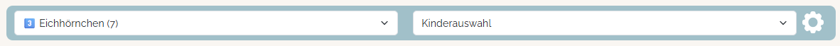 Links siehst du den Namen der Gruppe, die du gerade betrachtest, rechts hast du Zugriff auf die Profilseiten der Kinder der Gruppe. Du kannst, indem links im Feld mit dem Gruppennamen auf den Pfeil nach unten klickst, in eine andere Gruppe wechseln.